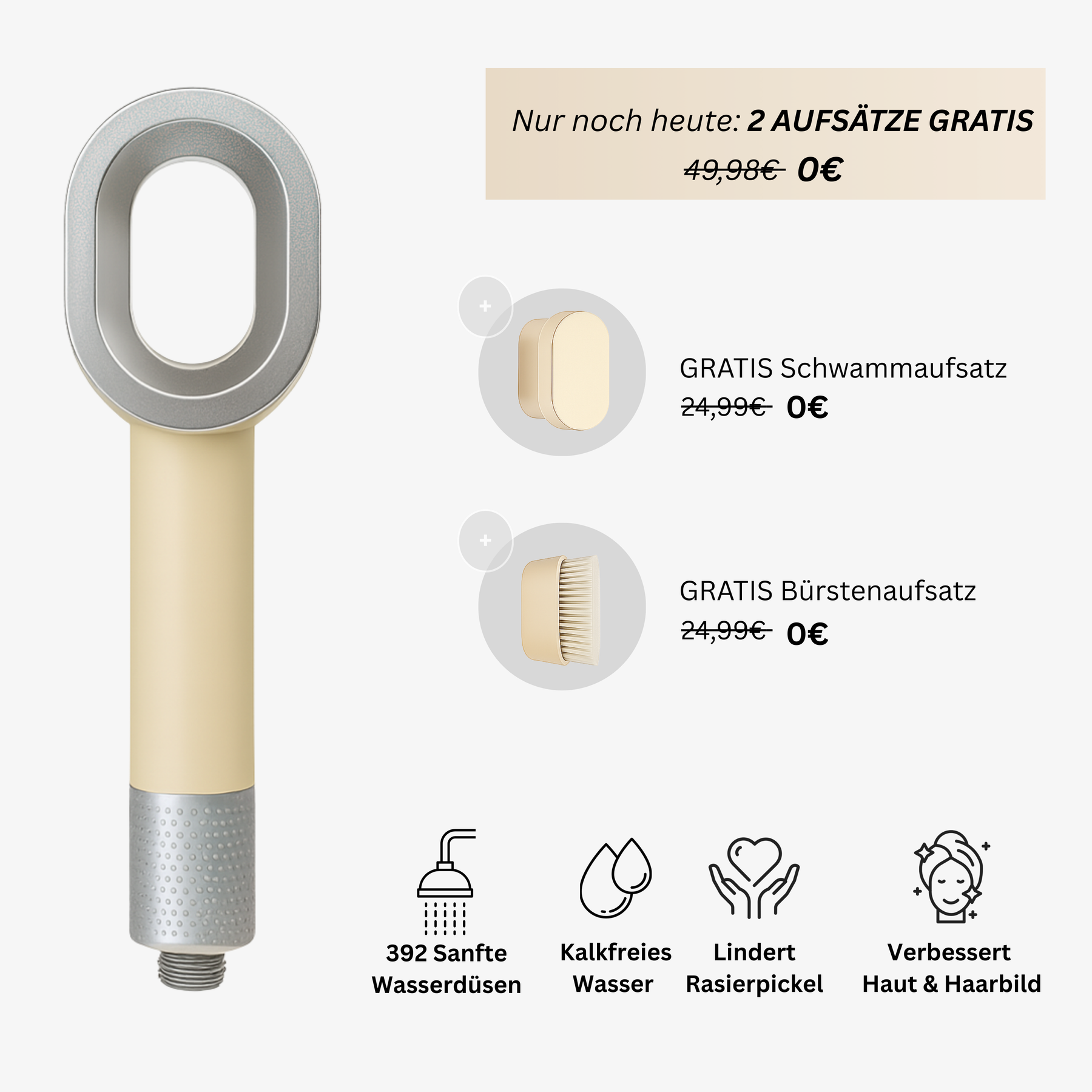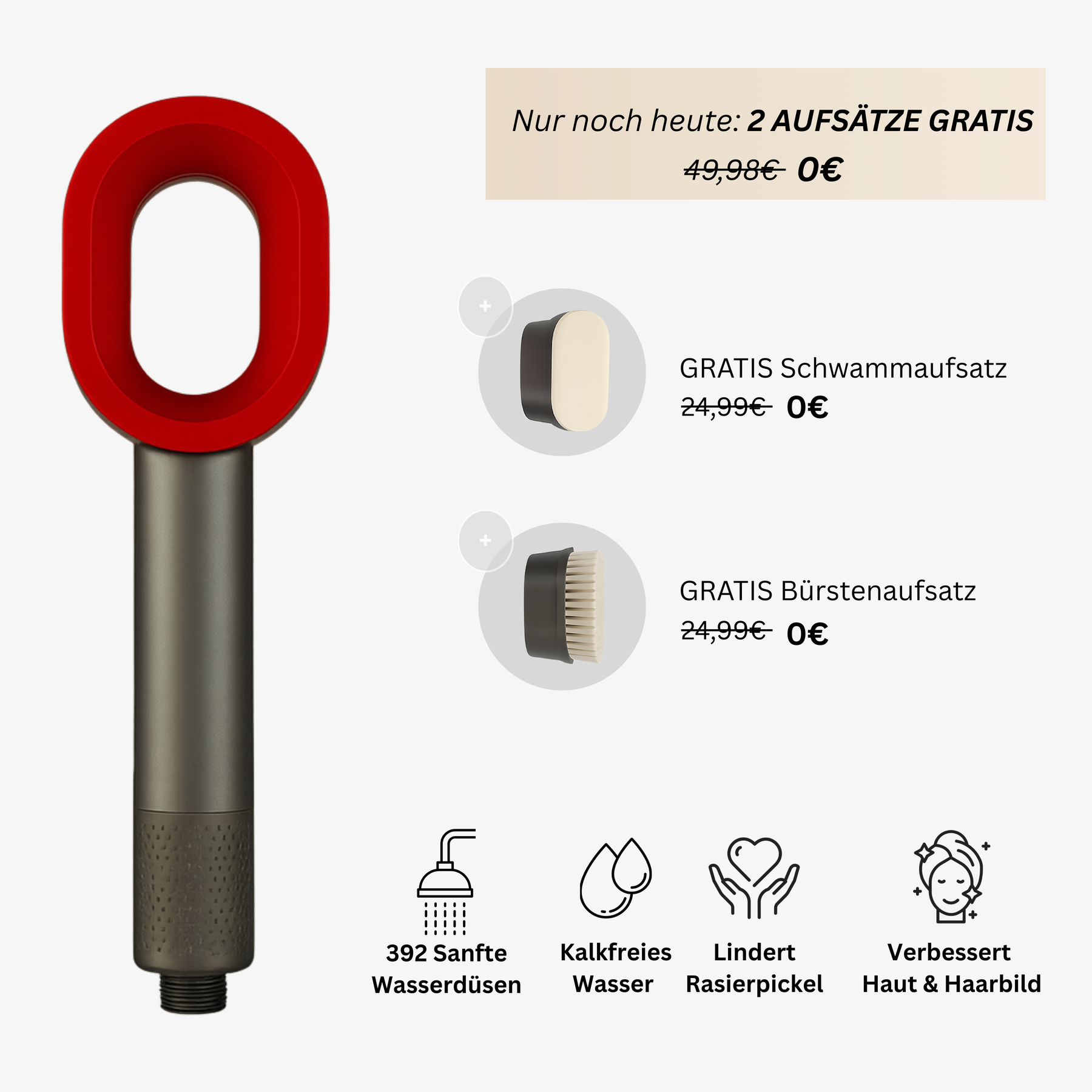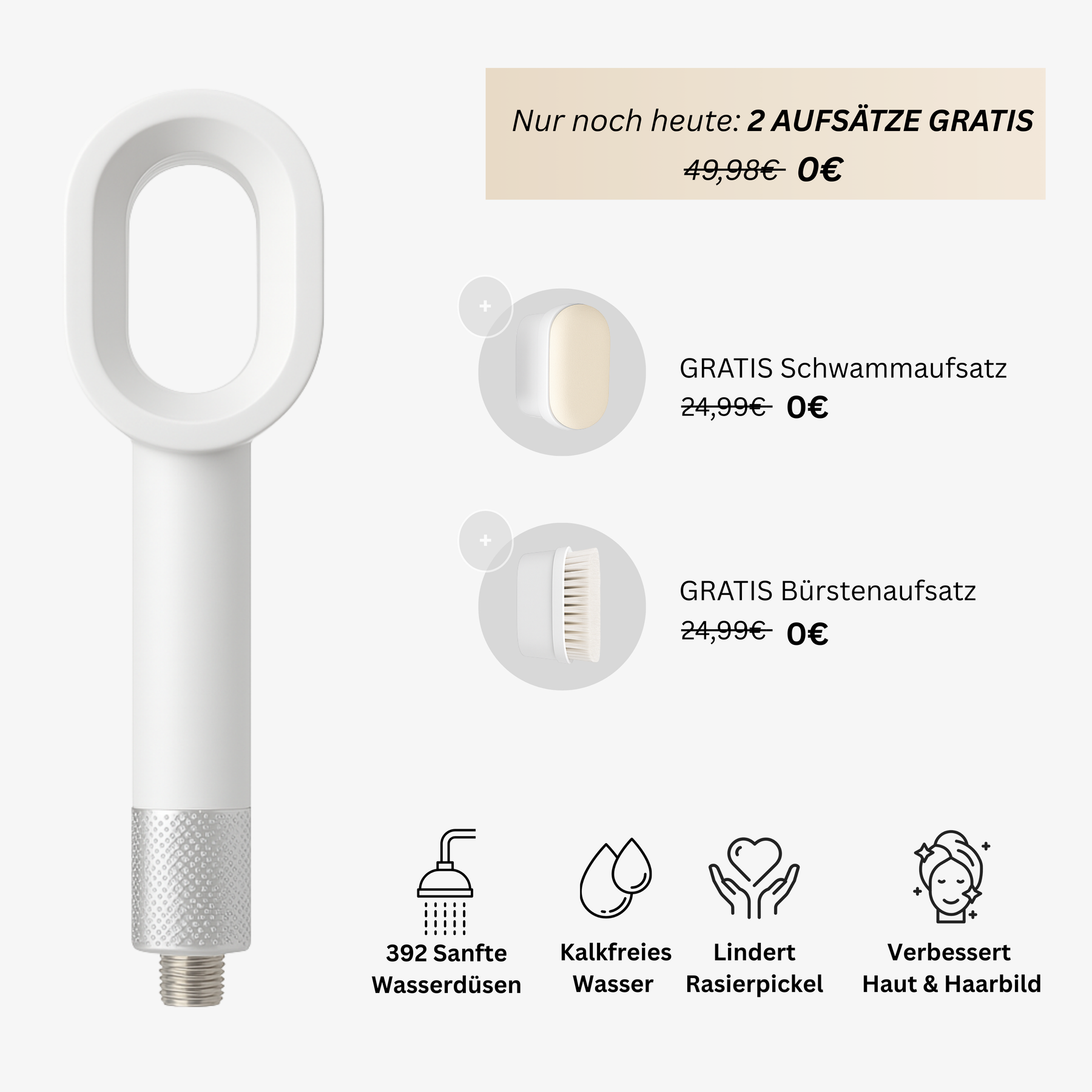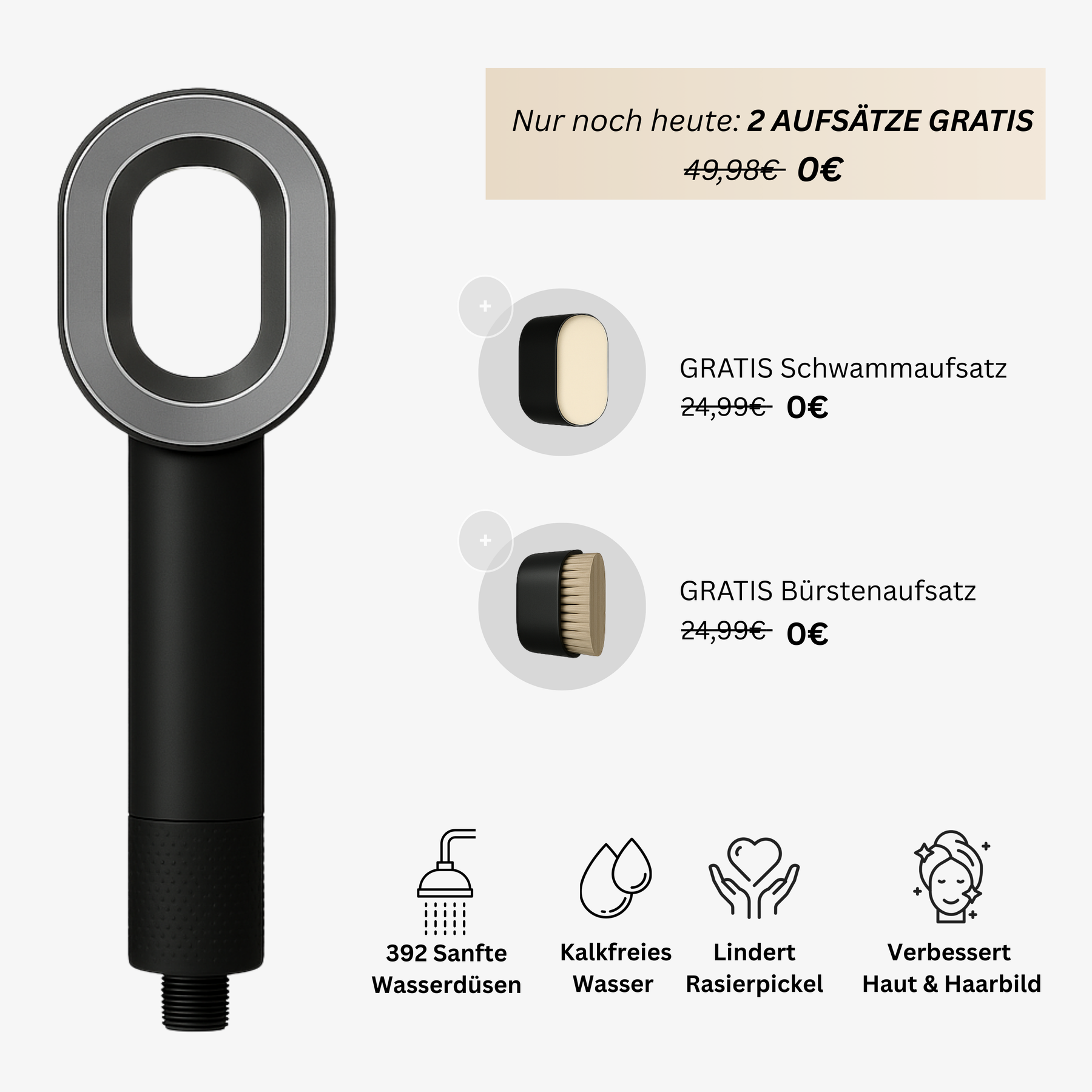 Unser Duschkopf überzeugt täglich tausende Kunden. Mit innovativer Filtertechnologie und magnetischen Aufsätzen sorgt er für sichtbar reinere Haut und ein verbessertes Duscherlebnis – direkt bei dir zu Hause.